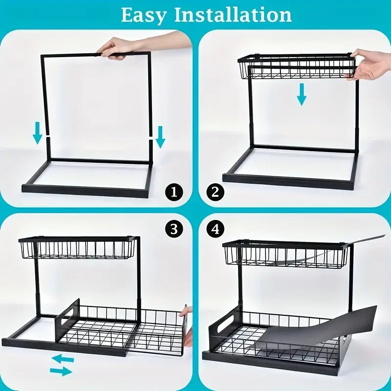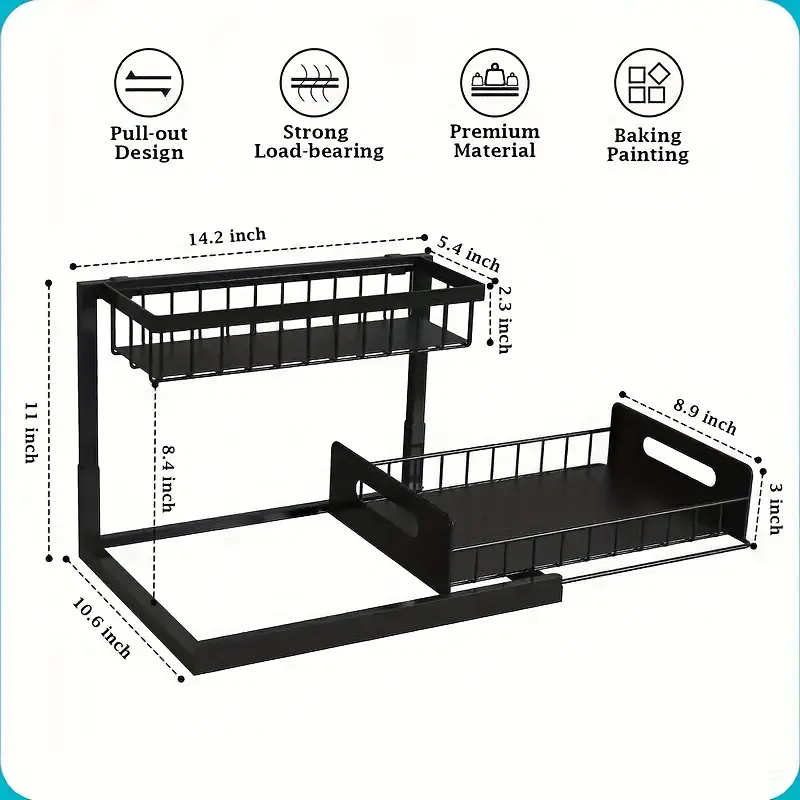 Under Sink Organizer, Pull Out Cabinet Organizer 2 Tier Slide Out Sink Shelf Cabinet Storage Shelves, Under Sink Storage for Kitchen Bathroom Cabinet